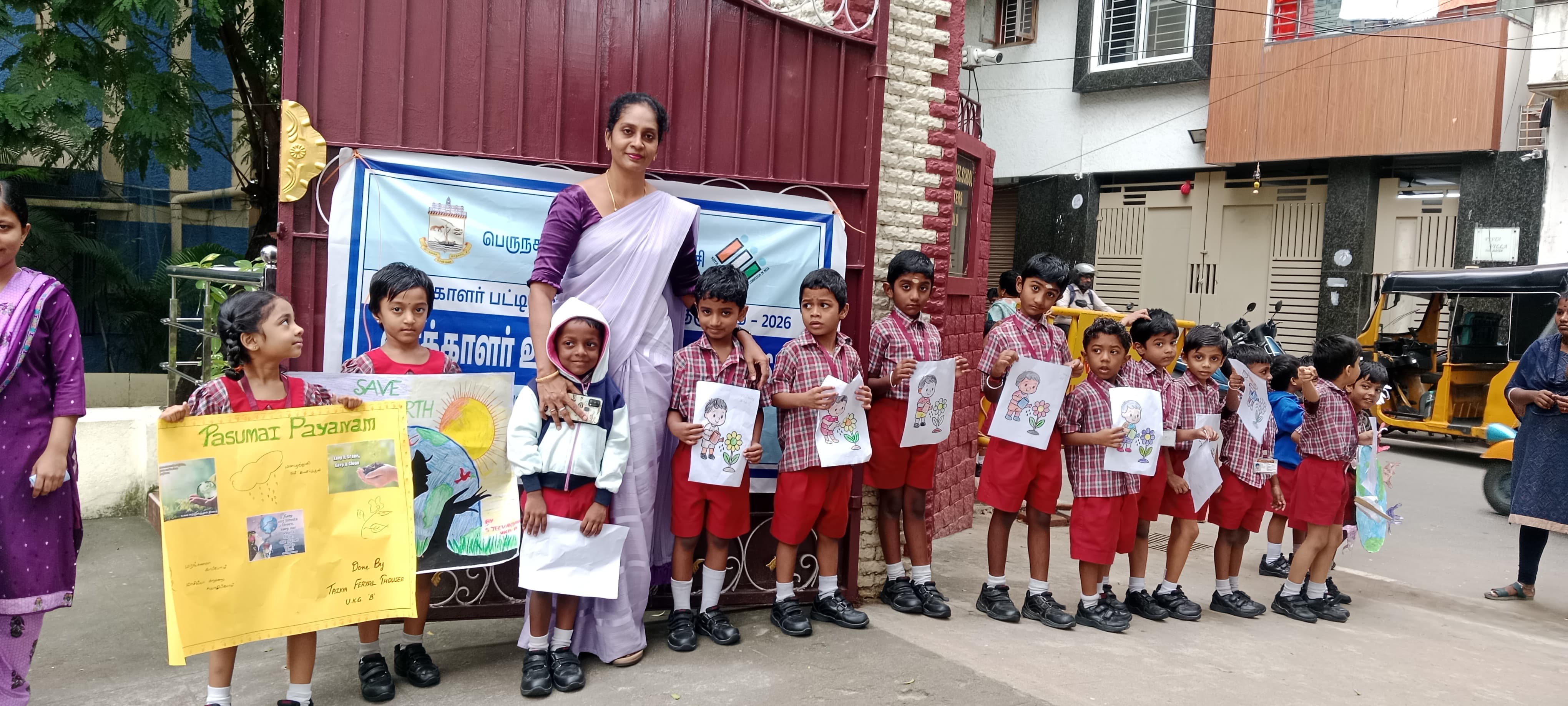 A rally on “Pasumai Payanam “was organized on 20th Nov 2025. Our Students took active participation to spread awareness about saving the environment. The children carried colourful placards with slogans like “Plant Trees, Save Earth” and “Reduce, Reuse, Recycle.” They marched enthusiastically around the school premises and on Arathoon road, urging people to protect nature.