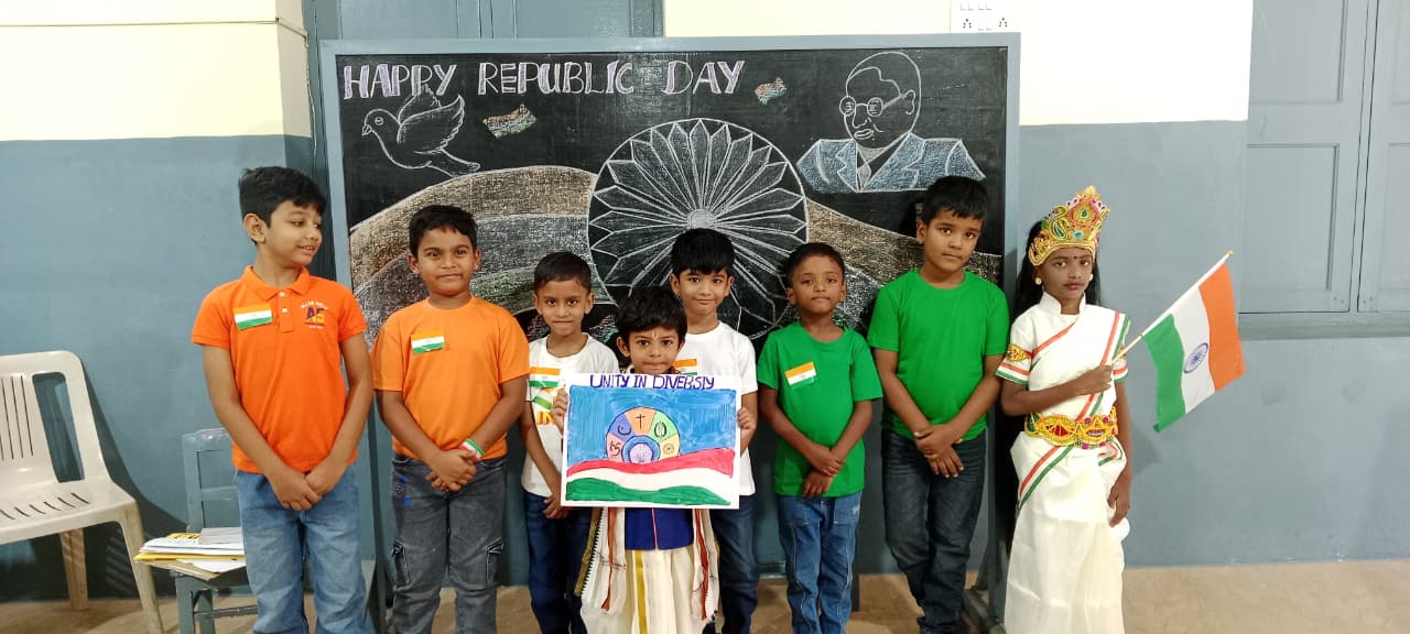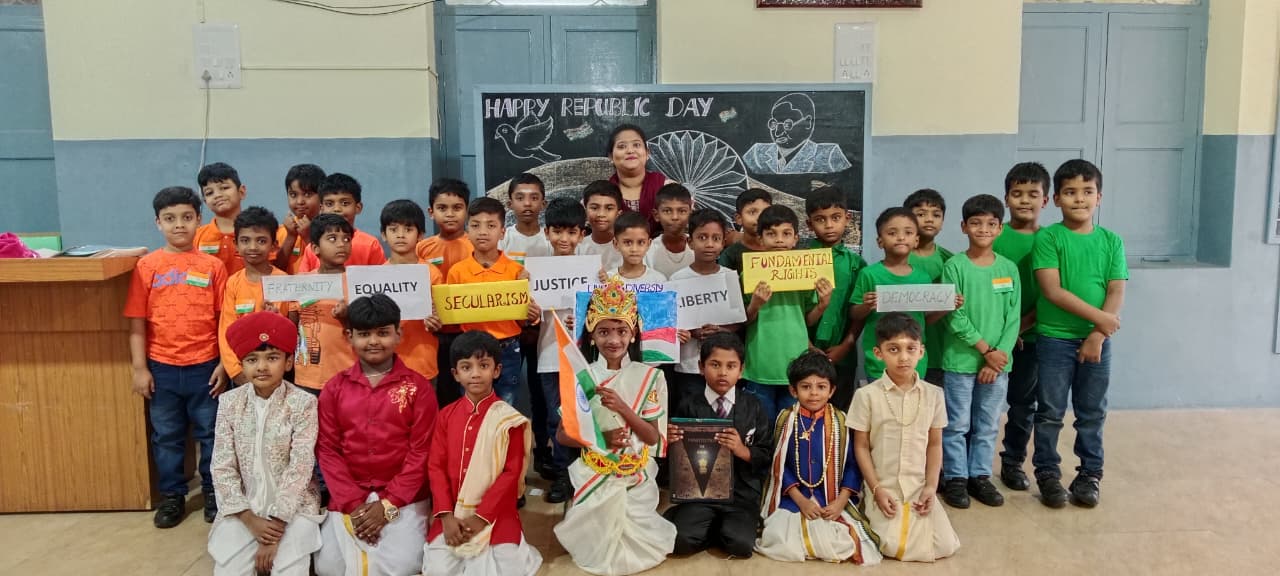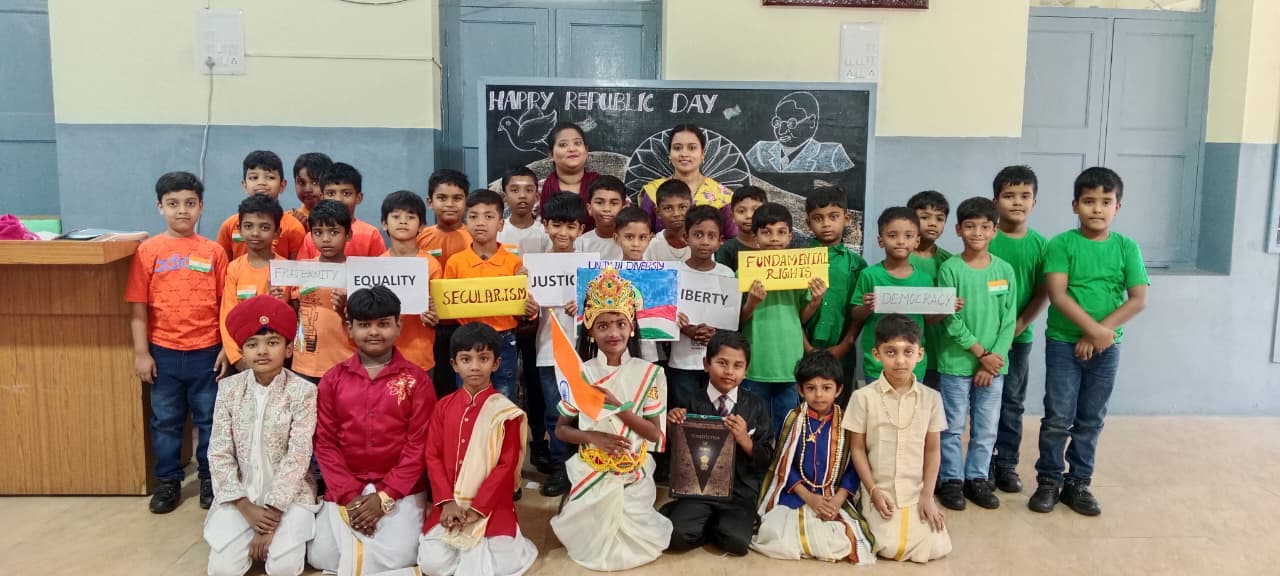 The primary children presented a vibrant Republic Day assembly with great enthusiasm and pride. Dressed in colorful attire, they began with a patriotic song, followed by speeches highlighting the importance of the Constitution and the values of unity and freedom.